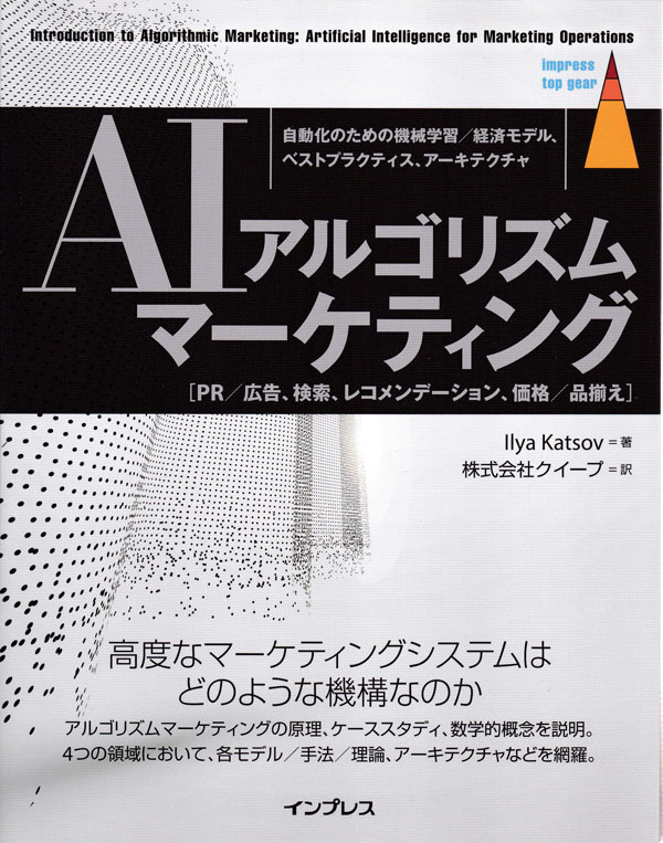 |  | | AIアルゴリズムマーケティング | | 2018年 10月 : 464ページ | | 978-4-295-00474-5 | | 株式会社インプレス | | 翻訳・編集・DTPを担当 |